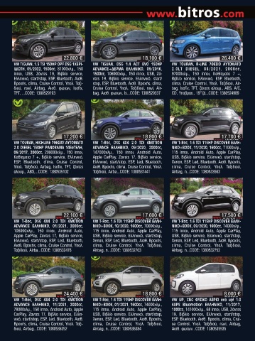 VW TOURAN, HIGHLINE 7ΘΕΣΙΟ! ΑΥΤΟΜΑΤΟ VW T-Roc, DSG 4Χ4 2.0 TDI 4MOTION VW T-Roc, 1.6 TDI 115HP DISCOVER ΕΛΛΗ-