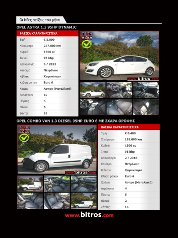 OPEL COMBO VAN 1.3 DIESEL 95HP EURO 6 ΜΕ ΣΧΑΡΑ ΟΡΟΦΗΣ