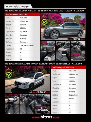 VW TIGUAN ΛΙΓΑ ΧΛΜ! ΠΟΛΛΑ EXTRA!+BOOK ΕΞΑΙΡΕΤΙΚΟ! - € 13.500