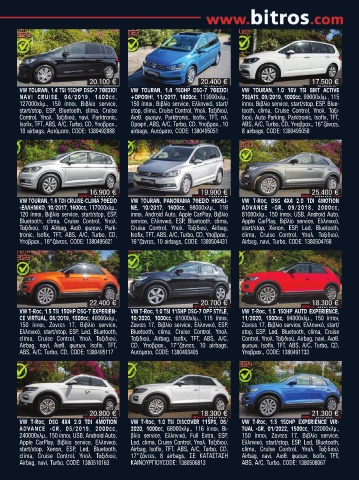 VW TOURAN, 1.6 TDI CRUISE-CLIMA 7ΘΕΣΙΟ VW TOURAN, PANORAMA 7ΘΕΣΙΟ HIGHLI- VW T-Roc, DSG 4Χ4 2.0 TDI 4MOTION