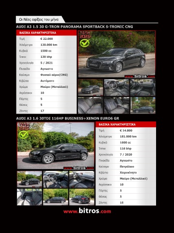 AUDI A3 1.5 30 G-TRON PANORAMA SPORTBACK S-TRONIC CNG