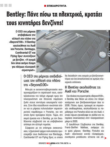 σειρά έρχεται και η Bentley, με τον διευ- περάσει αποκλειστικά στην ηλεκτροκίνηση