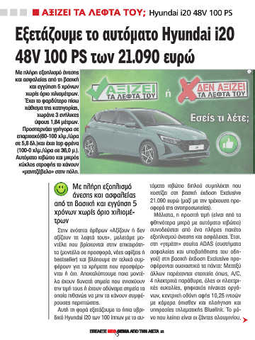 n n n n ΑΞΙΖΕΙ ΤΑ ΛΕΦΤΑ ΤΟΥ; Hyundai i20 48V 100 PS