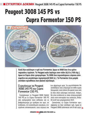 n n n n ΣΥΓΚΡΙΤΙΚΗ ΔΟΚΙΜΗ Peugeot 3008 145 PS vs Cupra Formentor 150 PS