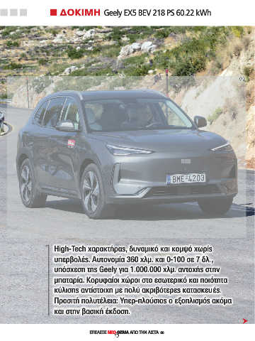 n n n n ΔΟΚΙΜΗ Geely EX5 BEV 218 PS 60.22 kWh
