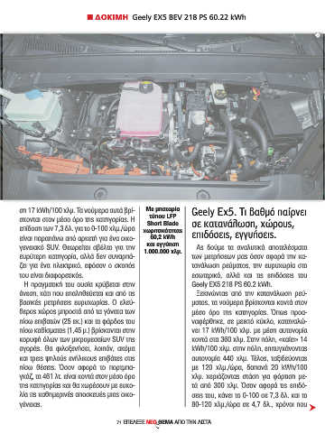 ση 17 kWh/100 χλμ. Τα νούμερα αυτά βρί- Με μπαταρία Geely Ex5. Τι βαθμό παίρνει