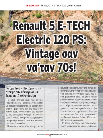 n ΔΟΚΙΜΗ RENAULT 5 E-TECH 120 Urban Range