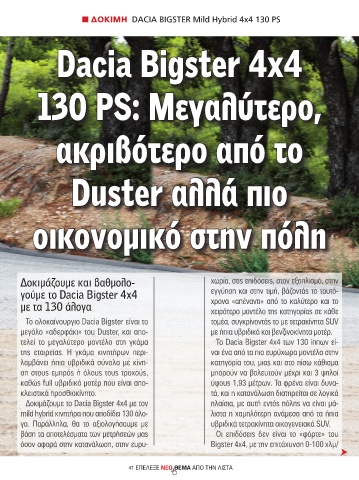 DACIA BIGSTER Mild Hybrid 4x4 130 PS n ΔΟΚΙΜΗ DACIA BIGSTER Mild Hybrid 4x4 130 PS