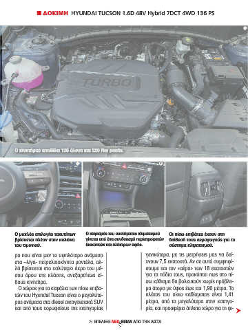 n ΔΟΚΙΜΗ HYUNDAI TUCSON 1.6D 48V Hybrid 7DCT 4WD 136 PS