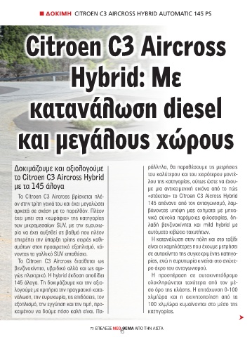 n ΔΟΚΙΜΗ CITROEN C3 AIRCROSS HYBRID AUTOMATIC 145 PS