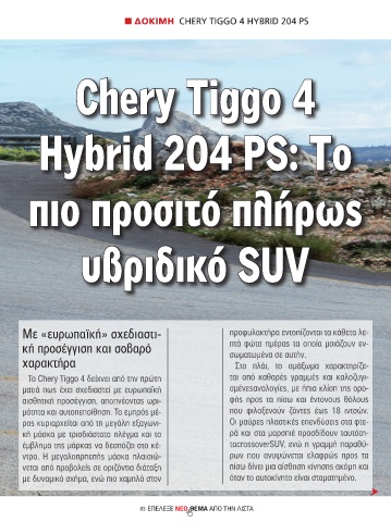 n ΔΟΚΙΜΗ CHERY TIGGO 4 HYBRID 204 PS