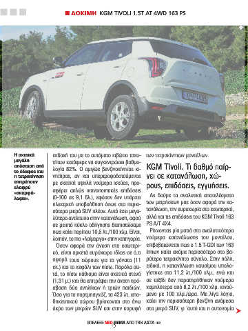 λύτερο αντίκτυπο στην κατανάλωση, αφού αλλά και τις επιδόσεις του KGM Tivoli 163