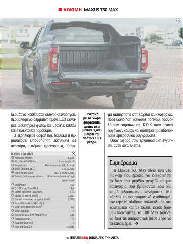 Ισχύς (ίπποι/σ.α.λ.) 215/3.500 Tο Maxus T60 Max είναι ένα νέο