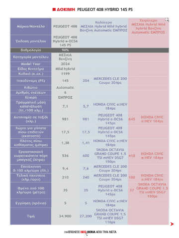 PEUGEOT 408 HYBRID 145 PS n ΔΟΚΙΜΗ PEUGEOT 408 HYBRID 145 PS S S 119ΕΠΕΛΕΞΕ ΝΕΟ ΘΕΜΑ ΑΠΌ ΤΗΝ ΛΊΣΤΑ #e-agora-themata_03_2026.indd 119 3/3/2026 1:50:17 πµ
