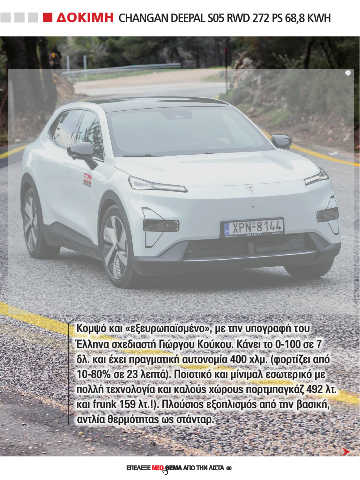 n n n n ΔΟΚΙΜΗ CHANGAN DEEPAL S05 RWD 272 PS 68,8 KWH