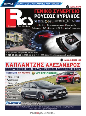 SERVICE ΟΙ ΚΑΛΥΤΕΡΟΙ ΕΠΑΓΓΕΛΜΑΤΙΕΣ ΑΝΑ ΠΕΡΙΟΧΗ ΓΛΥKA NEΡA ΙΛΙΟΝ-HUNDAI, KIA ΕΠΕΛΕΞΕ ΝΕΟ ΘΕΜΑ ΑΠΌ ΤΗΝ ΛΊΣΤΑ 44 #e-agora_proionda_12_2025.indd 44 1/12/2025 8:33:54 µµ